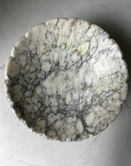 Antique Italian Alabaster Pedestal Compote Bowl with Brass Feet