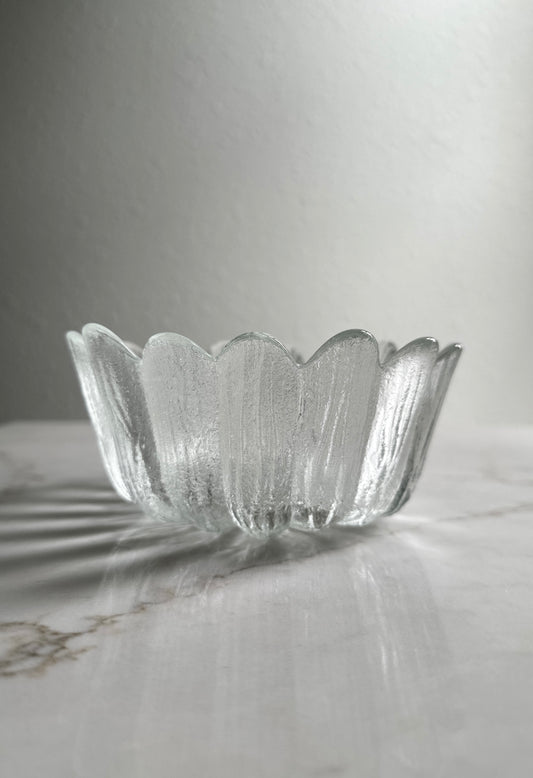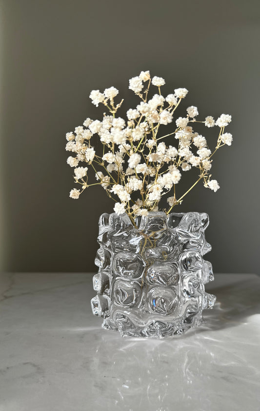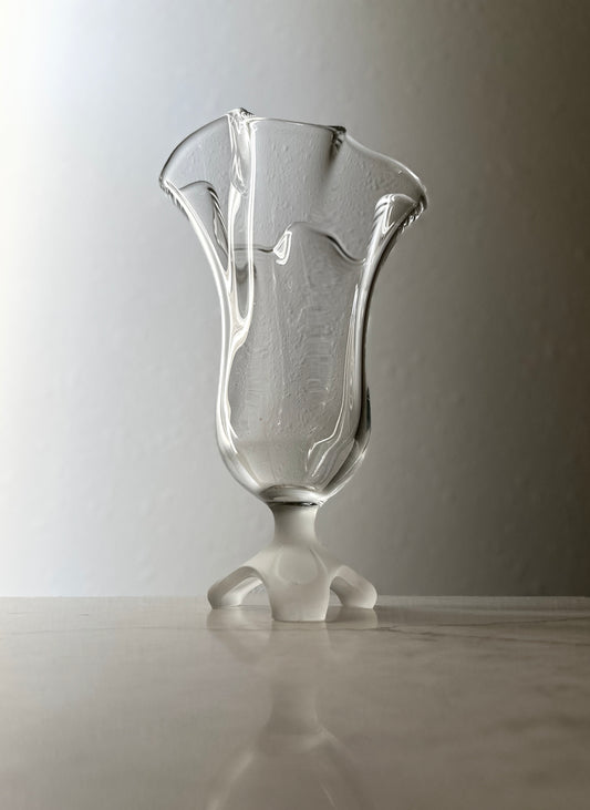 Vintage Glass Ruffled Vase with Frosted Footed Base