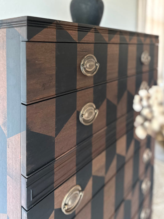 Vintage Modern Style Geometric Pattern 1940’s Dresser